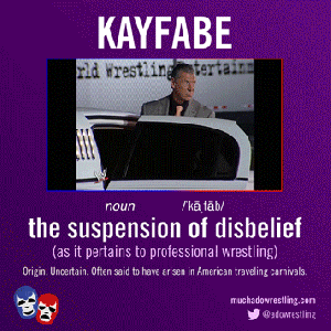 Then they give a vocabulary lesson with the Word Of The Day, Kayfabe, and some of the most infamous moments where it was upheld or broken (06:30)