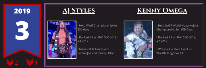 “This was a great and also lackluster year for Kenny Omega. He finally defeated Okada and got the iIWGP title, but in a weird sense, it was all downhill from there.” – Tyler